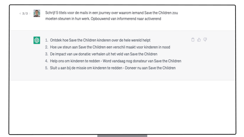 ChatGPT maakt het nu voor iedereen mogelijk om onbeperkt (redelijk goede) content te genereren. Ideaal om binnen no-time allemaal mailstraatjes te genereren… Of betekent dit juist het einde van deze strategie en moeten we op zoek naar een andere aanpak? Hoe maken we van koude leads structurele donateurs in een tijd van een absolute overkill aan content?